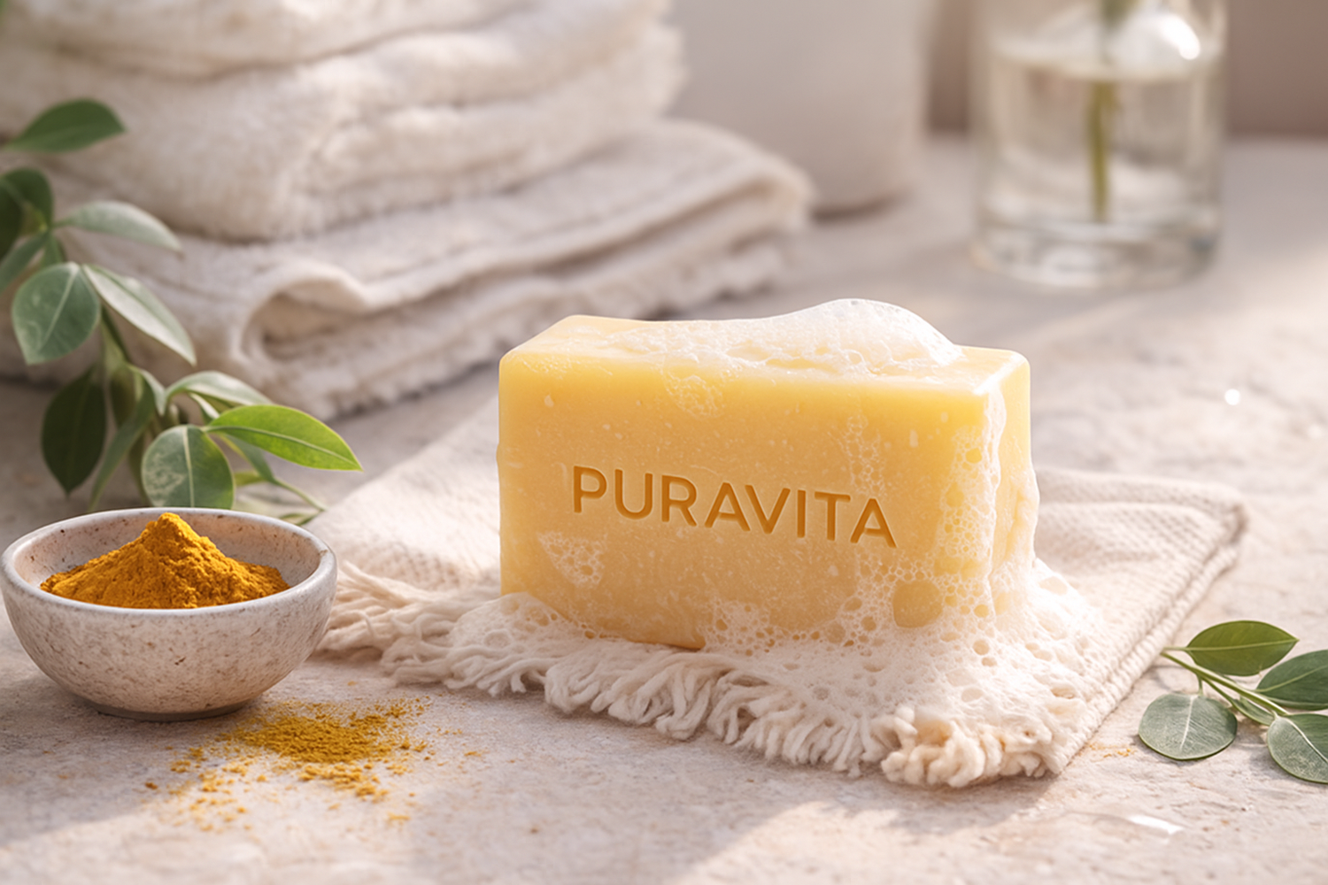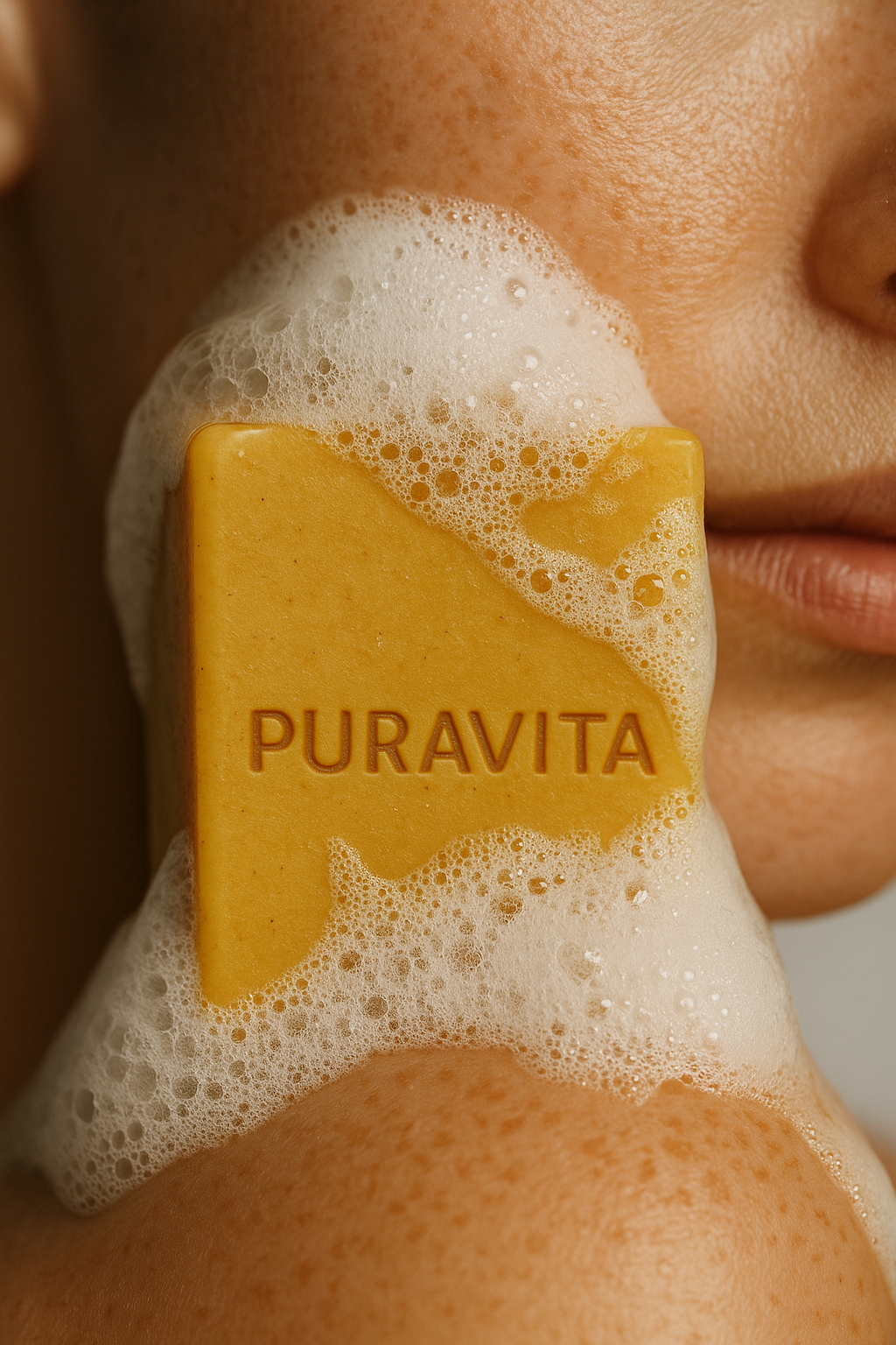 Esqueça os sabonetes comuns. A PURAVITA transforma a curcuma numa experiência luxuosa: textura sedosa, espuma delicada e pureza vegetal.